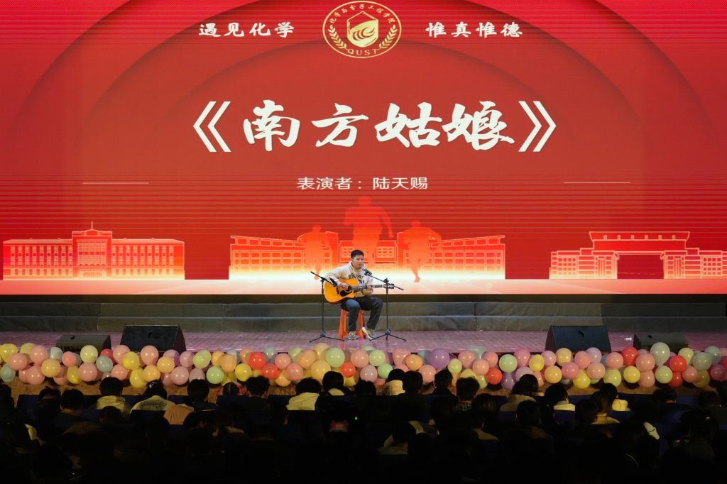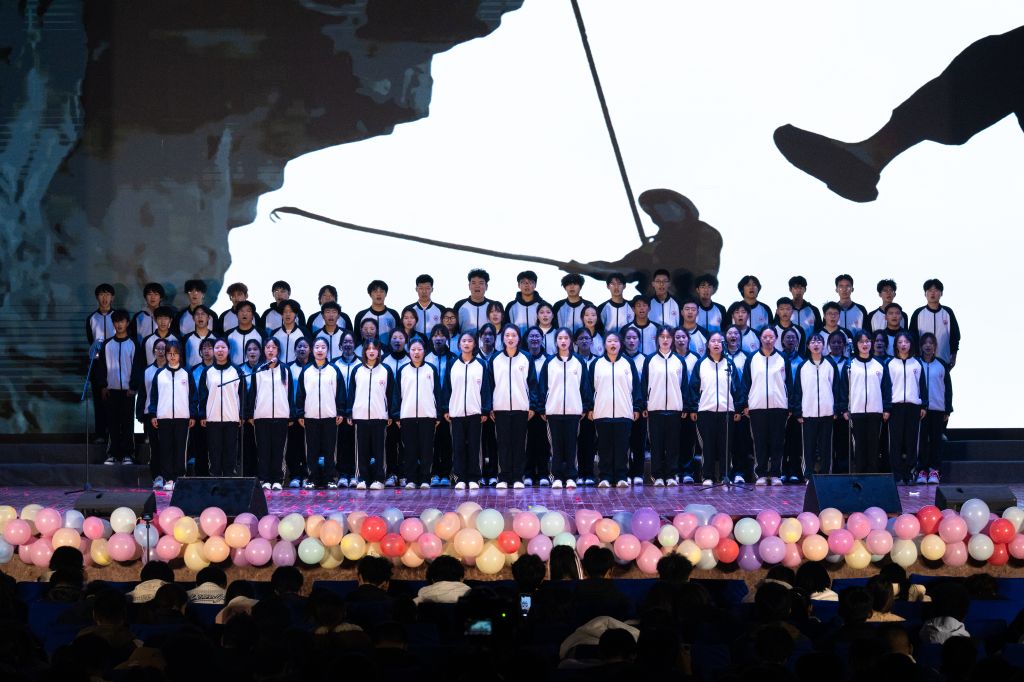 《剑心武韵》武术表演刚柔并济、气势如虹,展现中华武魂;独舞《巫山梦·红梅妆》以古典意象融合现代审美,舞姿婉转、意境悠远,尽显中华传统文化之美;化学院合唱团深情献唱《英雄赞歌》,歌声嘹亮、情感真挚,致敬民族脊梁;最后,化学院第十五届学生会全体成员惊喜亮相,以“彩蛋”形式集体登台,用歌声和舞步传递快乐的笑容,将晚会氛围推向高潮。