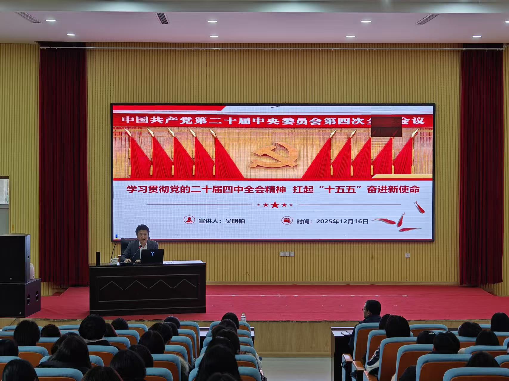 吴明铂以《学习贯彻党的二十届四中全会精神,扛起“十五五”奋进新使命》为主题,通过生动的案例、翔实的数据系统回顾了“十四五”时期我国经济社会发展取得的历史性成就,并对党的二十届四中全会的重要意义、《中共中央关于制定国民经济和社会发展第十五个五年规划的建议》擘画的未来五年发展蓝图、目标、原则与具体部署进行了详细的讲授。结合学校“十四五”发展成就及“十五五”规划,吴明铂重点总结了学校在学科建设、人才培养、科技创新等领域实现的突破性进展,详细介绍了学校“十五五”擘画的“1个总体规划+9个专项规划+2个特色规划+N个学院、部门、校区规划”的未来规划蓝图。他勉励学生要把握发展机遇,充分发挥化学、生物等基础学科的支撑与交叉融合优势,积极融入学校整体发展战略,培育创新发展新动能,在服务国家战略和学校发展中展现新担当、实现新作为。