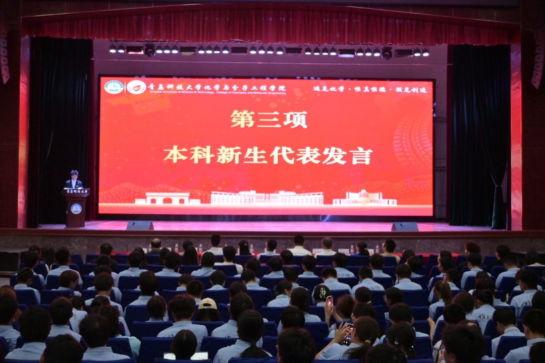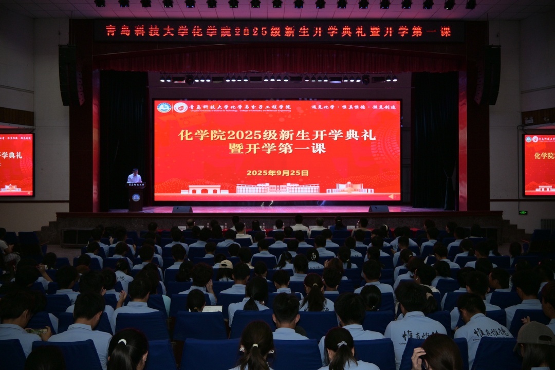 9月25日晚,化学院2025级新生开学典礼暨“开学第一课”在四方校区西礼堂举行。学院党委书记肖强、光电传感与生命分析教育部重点实验室主任丁彩凤、学院党委副书记兼副院长刘尧、学院副院长郭维斯、学院副处级组织员张同雷、青岛市教学名师于跃芹、2025届我最喜爱的老师周新红、专业教研室老师、新生班主任、全体辅导员及2025级全体新生参加典礼。典礼由学院团委书记兼学工办主任闵繁盛主持。