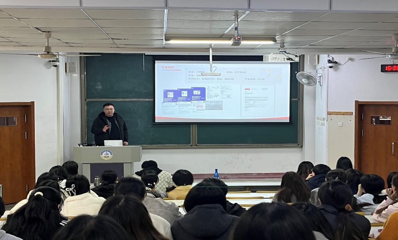 为充分发挥优秀学生的示范引领作用,助力研究生明确前进方向、确定发展目标、做好学业规划,3月27日,由化学院研究生会在第二教学楼101室开展惟真惟德大讲堂-国奖风采:照亮分析探索之路。本次分享会聚焦分析化学领域,特邀王桢、王冰、吕明瑞和李志康四位国家奖学金获得者作为分享嘉宾,由刘云担任主持,全体研究生参加此次活动。
