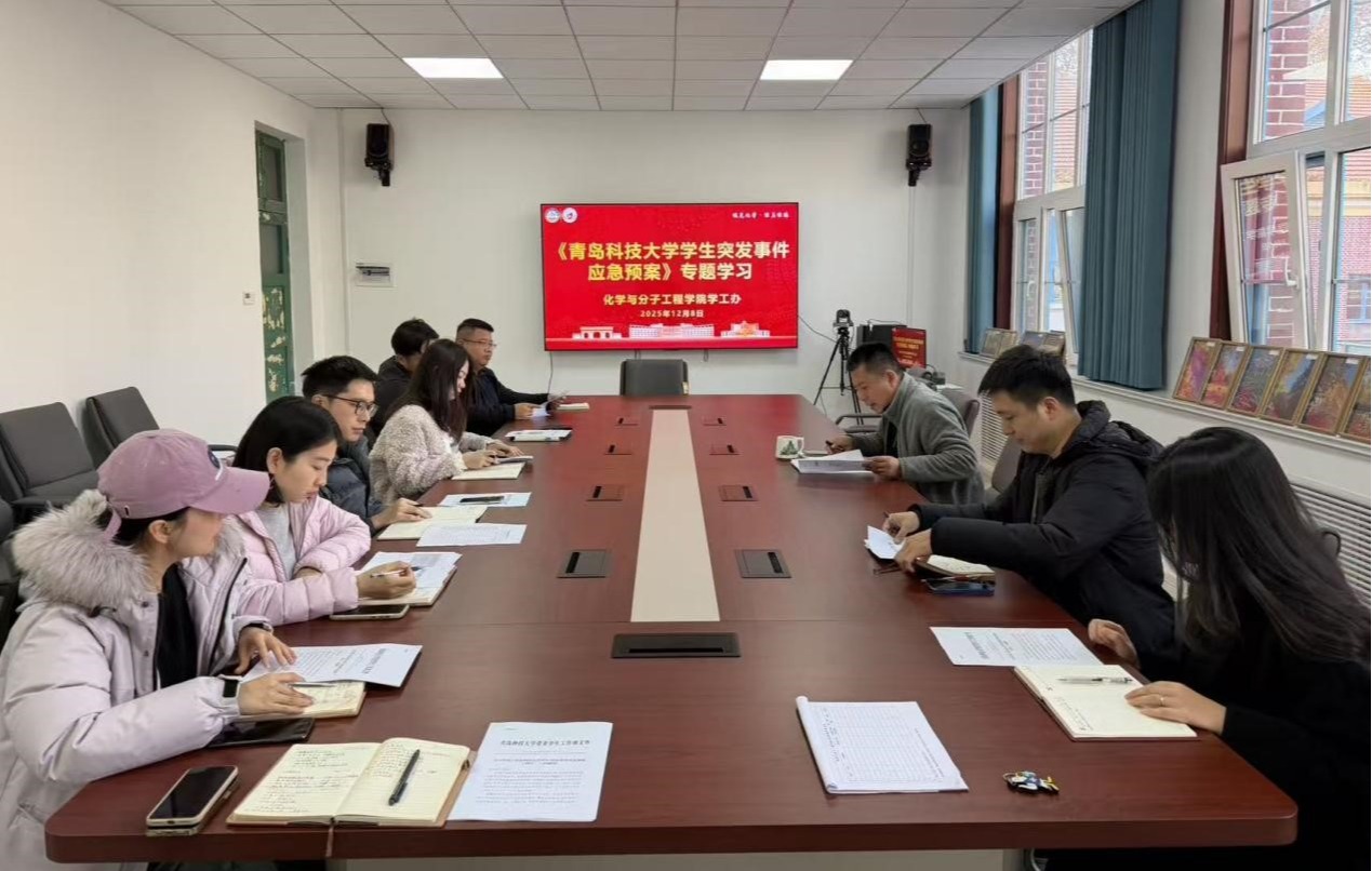 12月8日,学院在一政223会议室组织开展《青岛科技大学学生突发事件应急预案(修订)》专题学习。学院党委副书记兼副院长刘尧、全体辅导员老师参加学习。