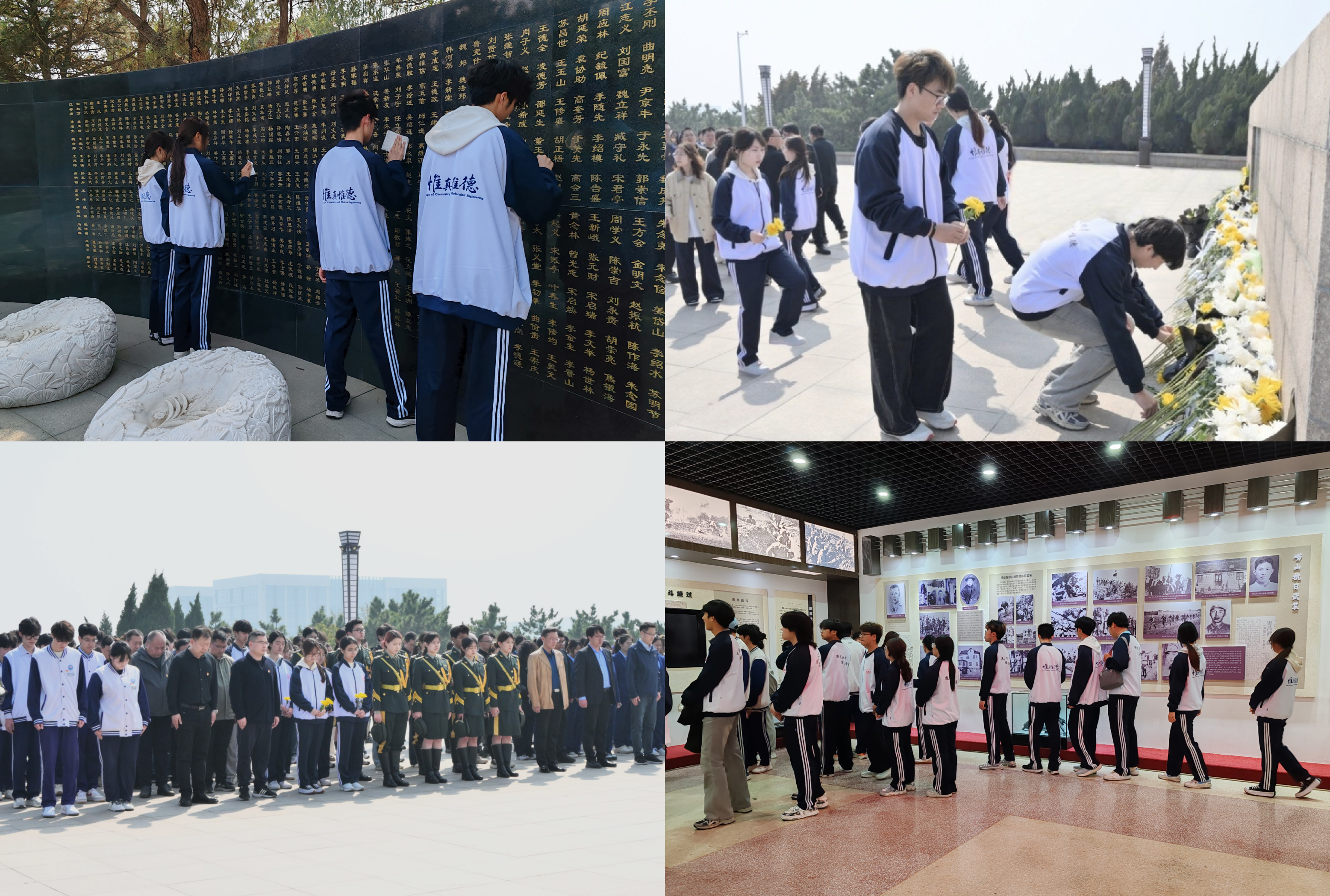 午后,同学们抵达纪念碑前,在五星红旗下整齐列队,众人静立瞻仰。随着国旗冉冉升起,全体肃立默哀。默哀结束后,学生代表缓步上前献花,将花篮轻放碑座,然后大家移步镌刻烈士姓名的英名碑,指尖拂过那些不朽的名字。最后,同学们有序进入纪念馆参观,在文物与史料前凝视,深切感悟英烈精神的厚重与伟大。