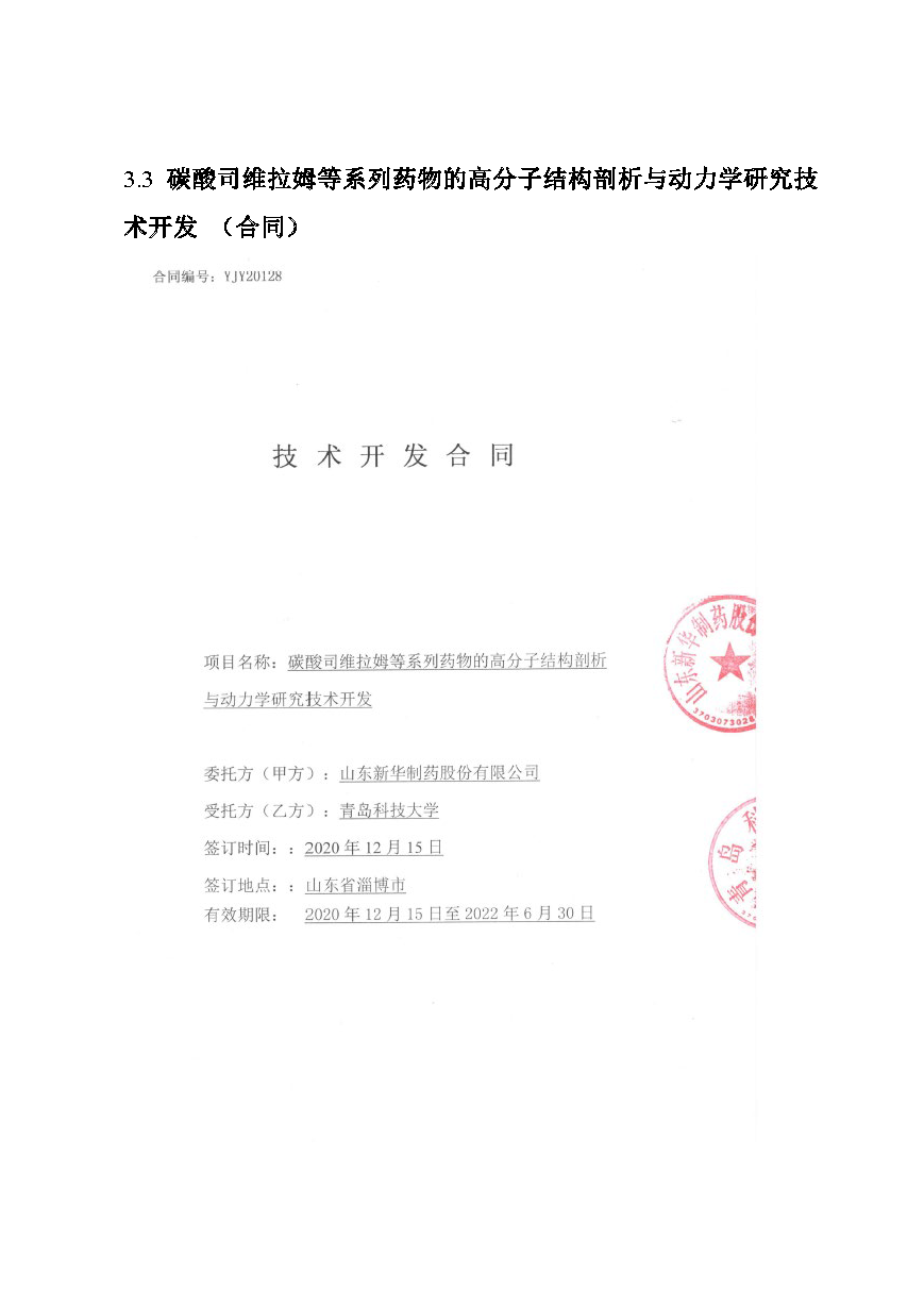 碳酸司维拉姆等系列药物的高分子结构剖析与动力学研究技术开发 (合同)